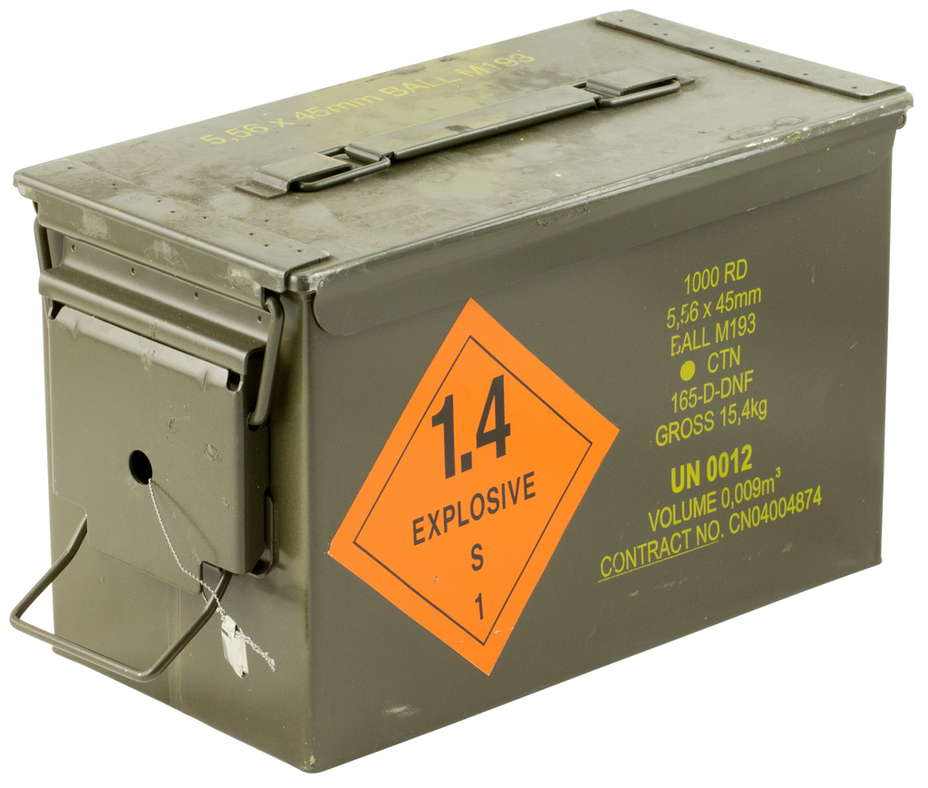 This Century Arms M193 ammunition is non-corrosive and has a brass case. It comes packaged 50 round boxes in a 200 round plastic sleeve and a full 1,000 rounds in a reusable 50 caliber ammo can.