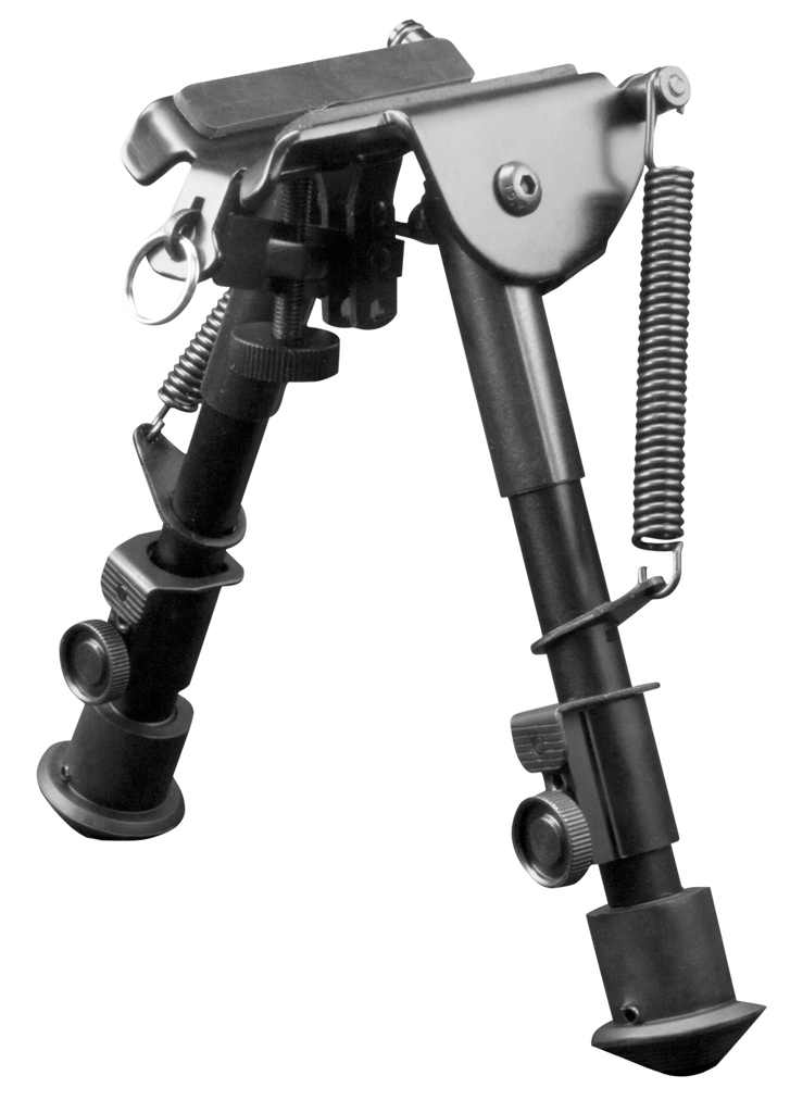 The H-Style spring tension bipod is ideal for quick withdrawal. It locks securely with multiple points of adjustment, and clamps to the common sling studs on most sporting rifles. An additional sling stud is integral with the design, allowing the shooter to use their sling.