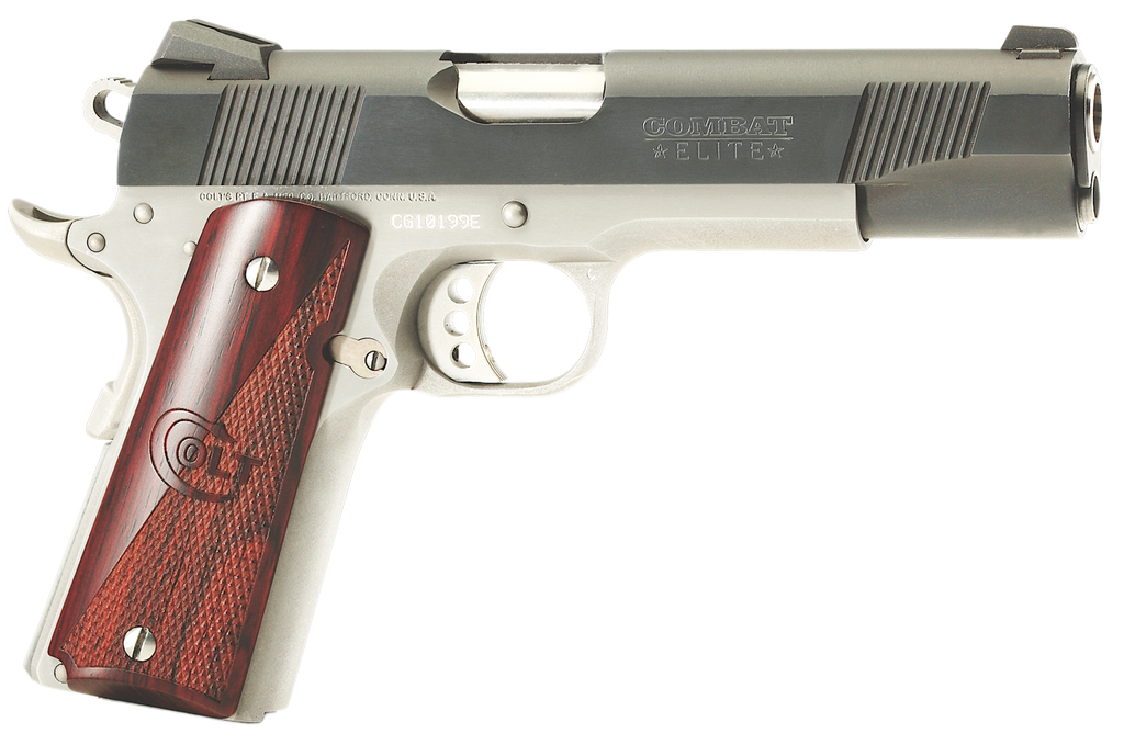 The Colt Combat Elite is a classic pistol built with features desired by the combat-style match shooter. This pistol features half checkered and half smooth rosewood grips embossed with the Colt logo, a Colt upswept beavertail grip safety with palm swell, a Colt single-side tactical safety lock, a National Match barrel, and Novak low mount carry sights with dots. The heart and soul of the Combat Elite pistol is still derived from its forged steel receiver, forged steel slide, forged stainless steel barrel, and forged steel slide stop. The Combat Elite is a great addition for any collector or avid shooter.
