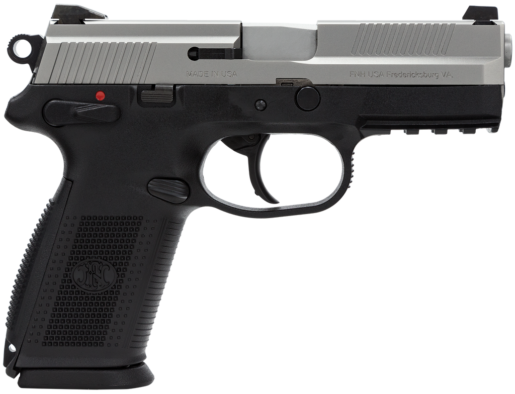 The FNX-9 offers all of the features that dedicated handgunners want. The ergonomic polymer frame has a low bore axis for less felt recoil and improved control. The grip panels are checkered and ribbed for comfortable, non-snag carry. Two interchangeable backstrap inserts quickly adapt the FNX to your hand size. The profiled stainless steel slide has cocking serrations front and rear and the 4" hammer forged stainless steel barrel delivers pinpoint accuracy. Ambidextrous operating controls (decocking/safety lever, slide stop and magazine release) make the FNX perfect for competition or personal defense. These pistols ship with 3 magazines and a lockable hard case. Made in the USA.