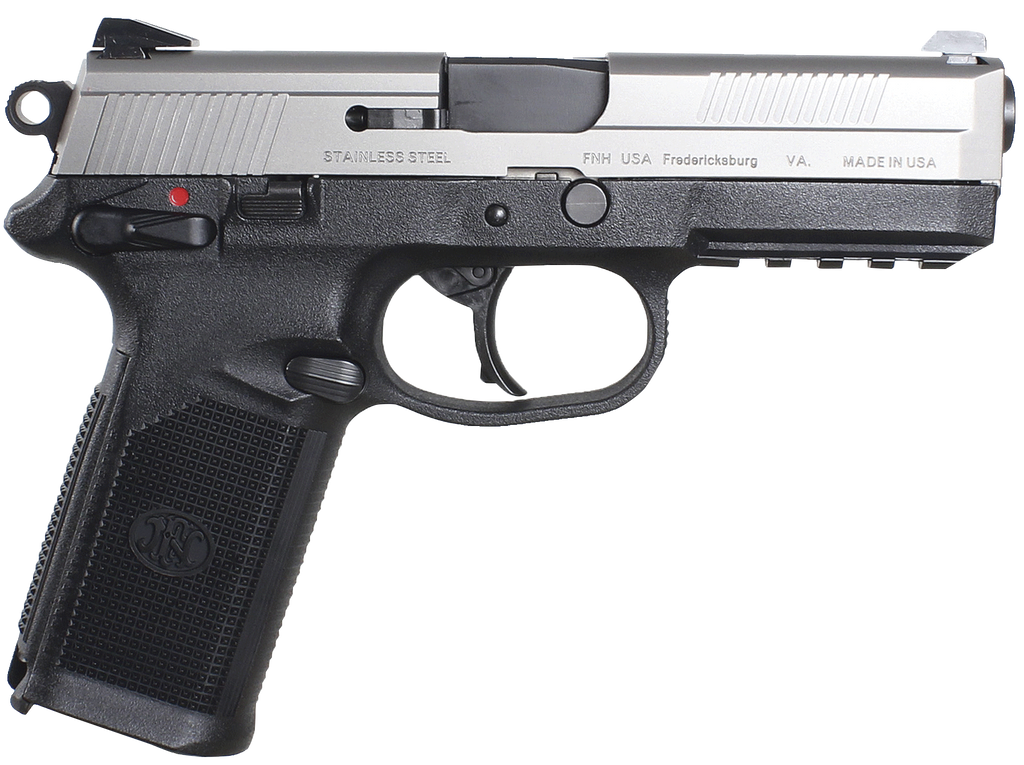 The FNX offers all of the features that dedicated handgunners want. The ergonomic polymer frame has a low bore axis for less felt recoil and improved control. The grip panels are checkered and ribbed for comfortable, no-snag carry. Two interchangeable backstrap inserts quickly adapt the FNX to your hand size. The profiled stainless steel slide has cocking serrations front and rear, and the 4" hammer-forged stainless steel barrel delivers pinpoint accuracy. Ambidextrous operating controls make the FNX perfect for competition or personal defense. Pistol ships with 3 magazines and a lockable hard case. Every FNX is made in the U.S.A.